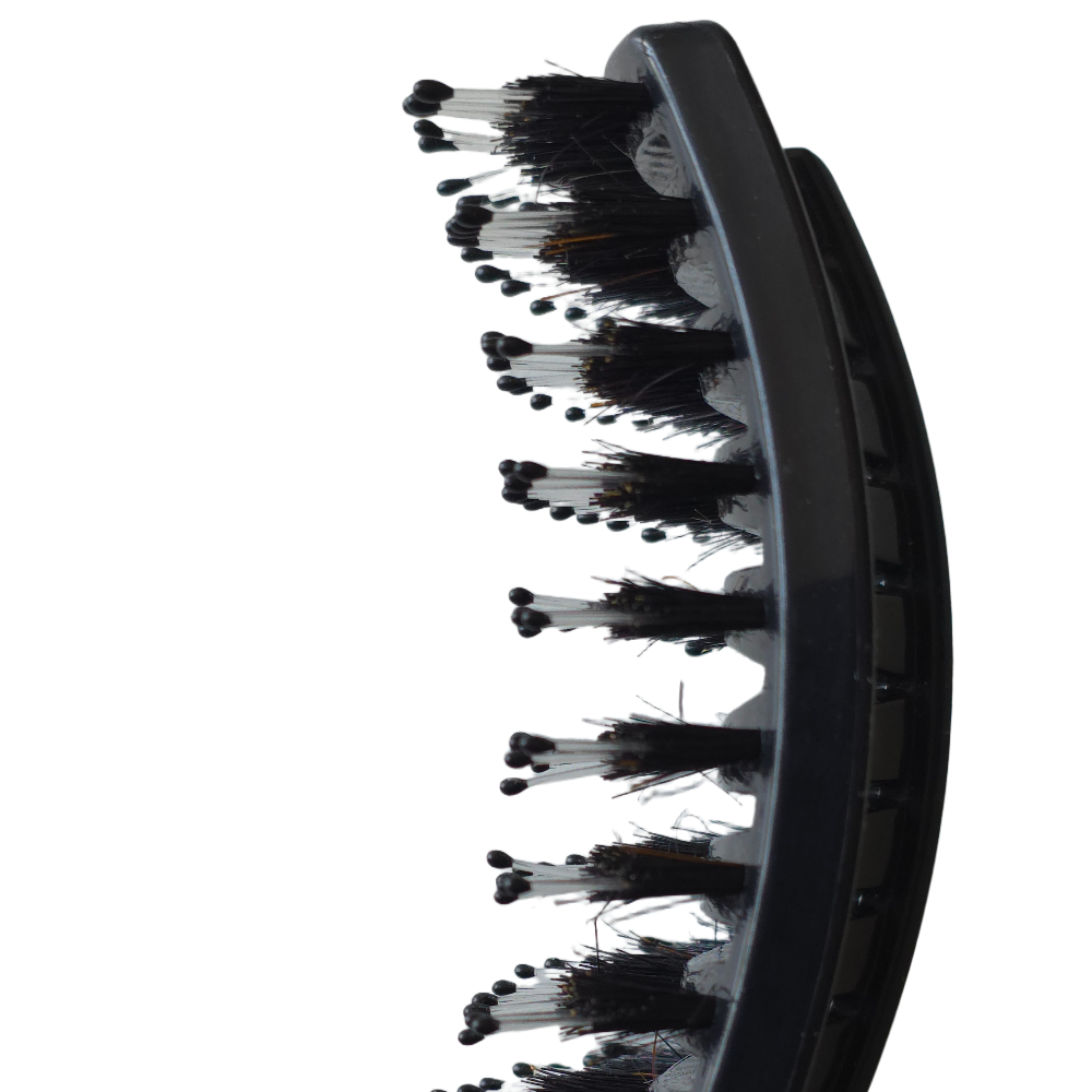 Når vildsvinehår kombineres med nylonpigge, opstår en effektiv synergi: Vildsvinehårene fordeler de naturlige olier fra hovedbunden ud i hårets længder, mens nylonpiggene stimulerer hovedbunden og løsner eventuelle knuder. Det resulterer i sundere hår med en naturlig glans – og en mere balanceret hovedbund.